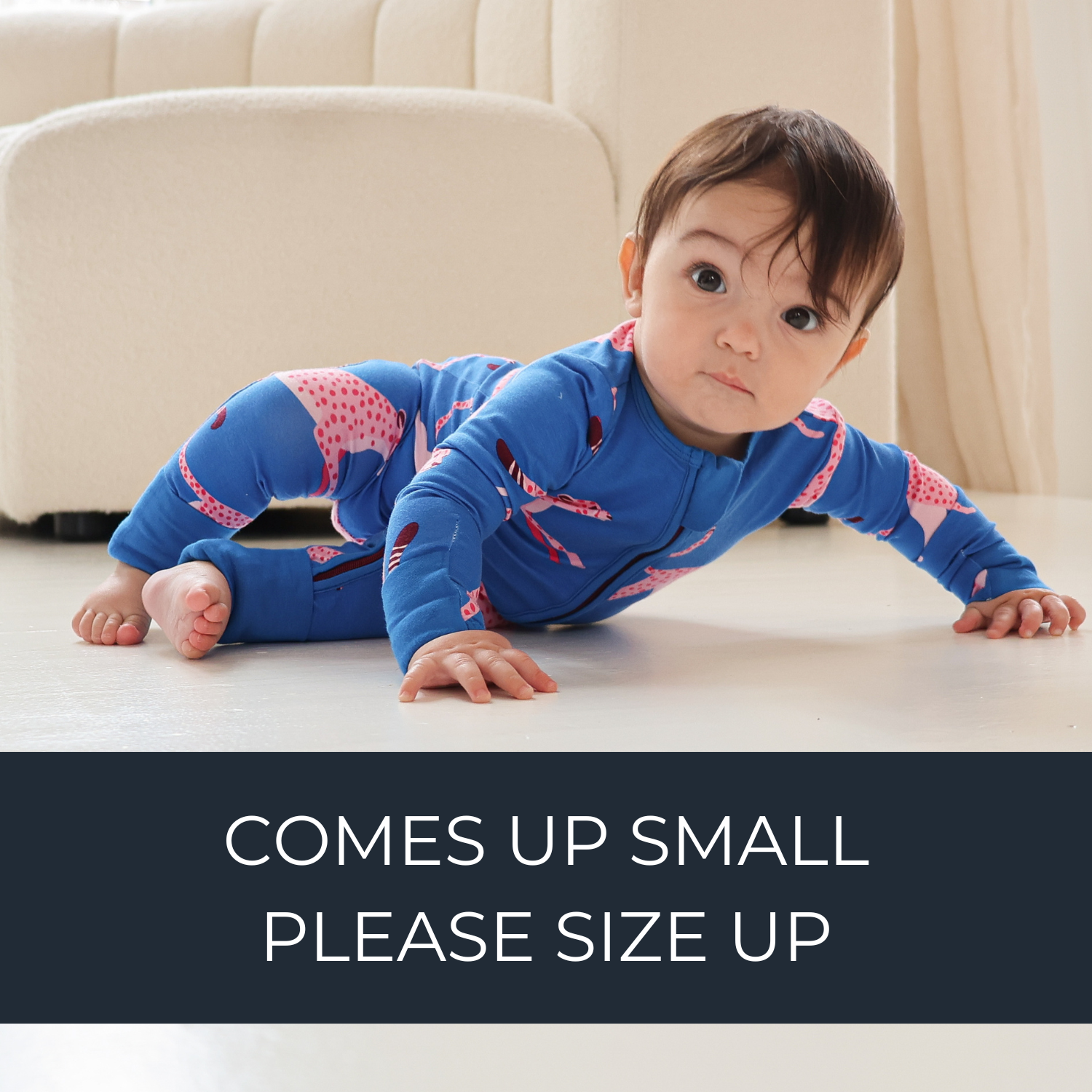 Συνιστούμε να μείνετε πιστά στο μέγεθος, αλλά αν έχετε αμφιβολίες για το μέγεθος, μειώστε το μέγεθος. Για παράδειγμα, αν το μωρό σας είναι 5 μηνών, σας προτείνουμε 3-6 μηνών αντί για 6-12 μηνών. Στις περισσότερες περιπτώσεις, το μωρό μεγαλώνει θα ταιριάζει μέχρι 2-3 μήνες μετά την κορυφαία ηλικιακή κλίμακα.